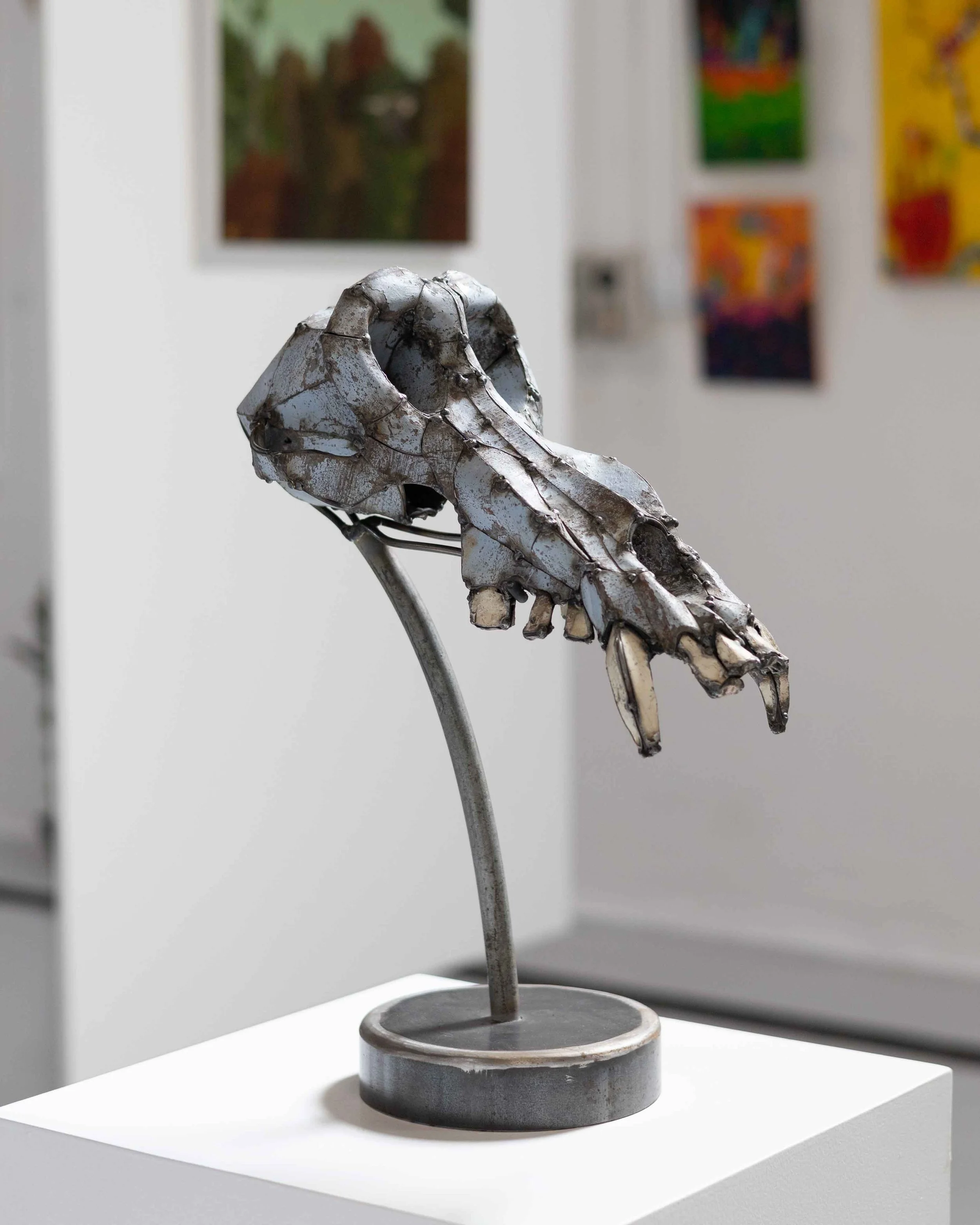 Gorilla Skull, steel rod armature lined with recycled corrugated iron, powder coated – $4,500