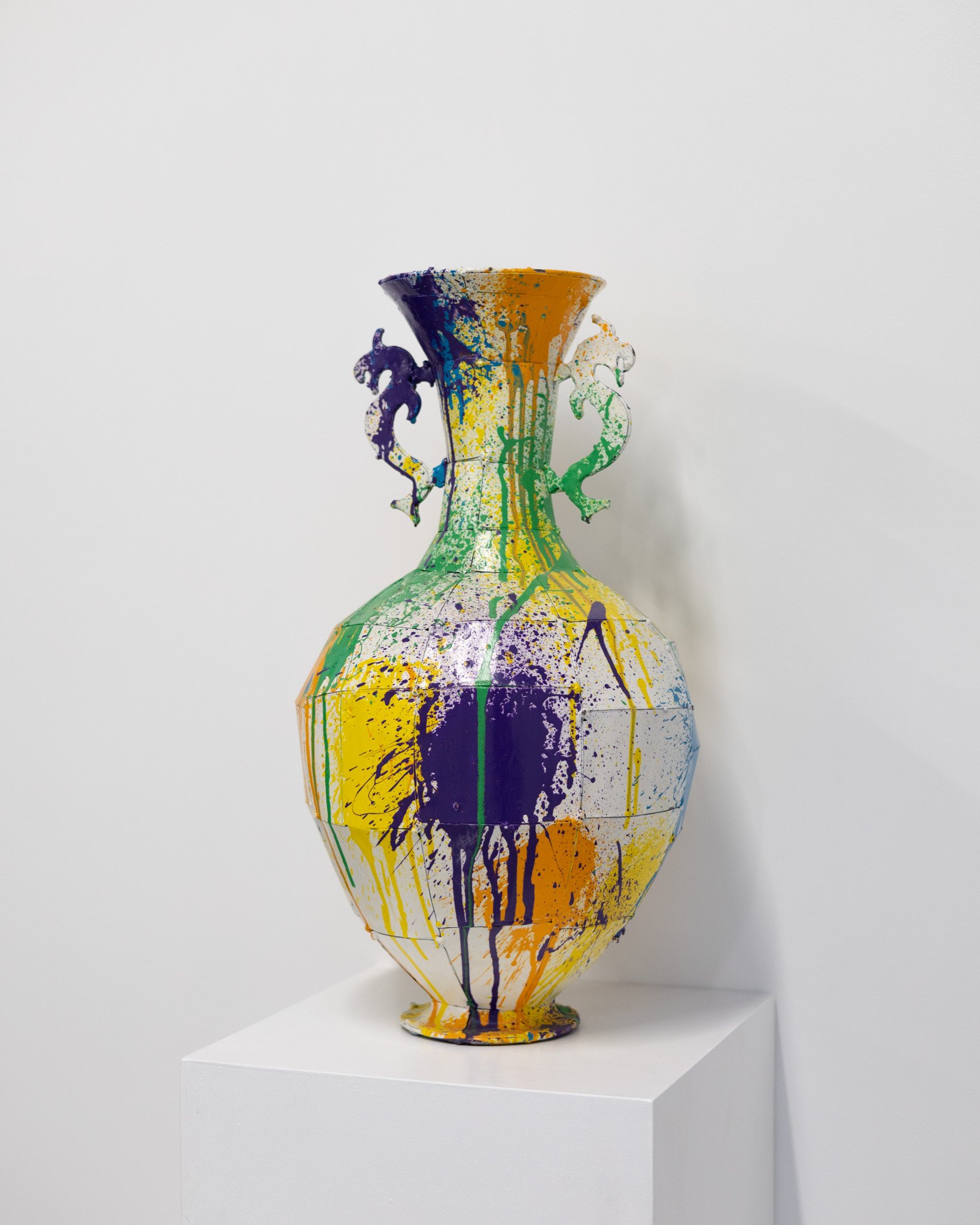 Vase, steel rod armature lined with recycled corrugated iron, powder coated – $4,500